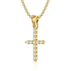 Angular Diamond Cross Necklace With Diamond Diagonal Cross Detail
