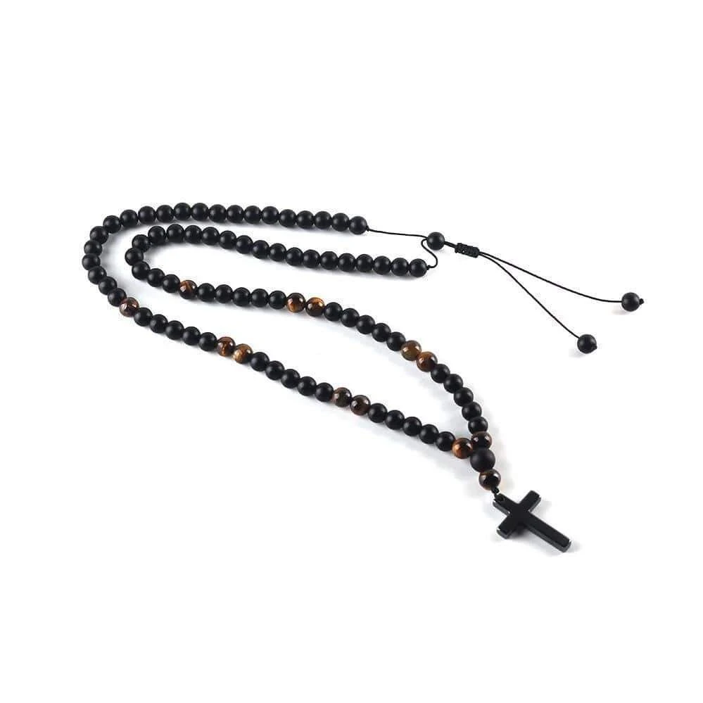 Beautiful Men’s Black Beaded Cross Necklace to wear to express your faith. As a symbol of your beliefs, this necklace is also used for the Rosary prayer.